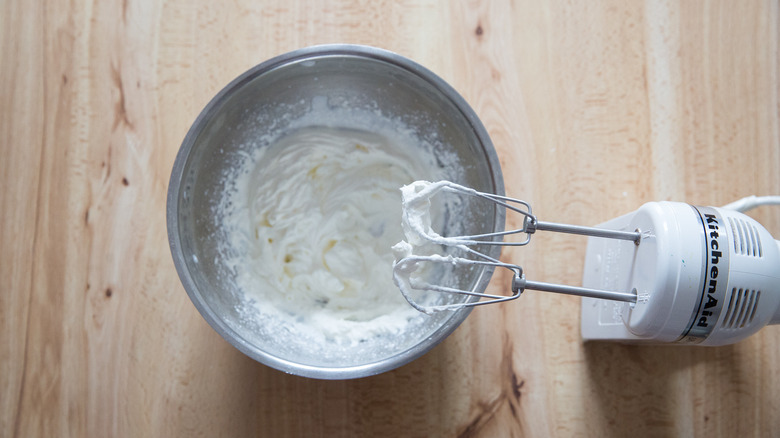 Place a mixing bowl and the beaters from an electric mixer in the freezer to chill for 10-15 minutes.