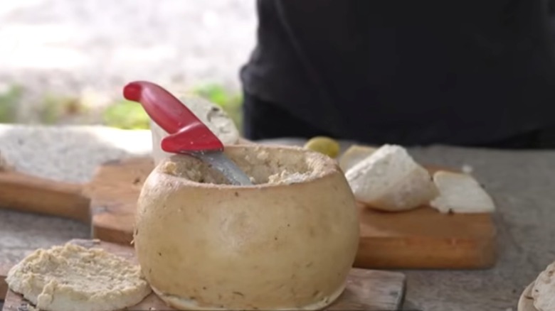 Now, we've come to the very controversial casu marzu, which is one of the few sheep's milk cheeses on the list. It's not a cheese that's easy to try because, while it's a protected traditional food of Sardinia, Italy considers it illegal to sell because it's made with maggots.
