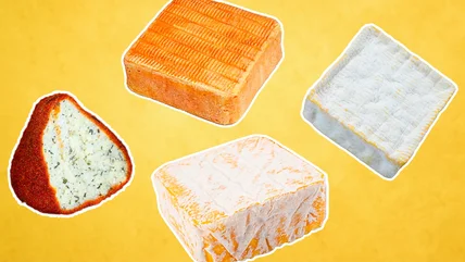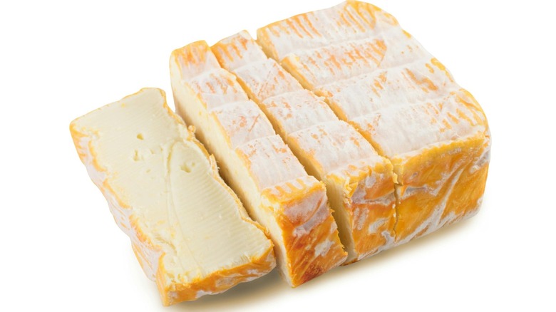 Another stinky cheese that hails from Northern France is Maroilles, a type of Trappist cheese that has a long history. The story of this cheese begins in the year 962 in Maroilles, France, where area monks asked farmers to start making a special cheese for them on Saint John the Baptist's feast day (June 24) so it would be ready to eat on Saint Remi's feast day (October 1), when they planned to serve it to the harvesters of the Champagne grape in the region. Today, the aging process is strictly between five weeks and four months, and it's always shaped as a square. Cheesemakers wash the rind with Brevibacterium linens and saltwater as it ages.