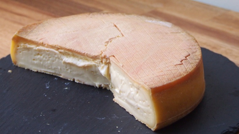 Because Benedictine monks produced this cheese, there's a theory that the name for the fromage may come from "monastère," the French word for monastery. Today, the cheese can only be made within a small area of France, and the unpasteurized milk has to come from Vosgiennes or Simmental cows. It also has to mature for two to three weeks while undergoing brine washes by hand.