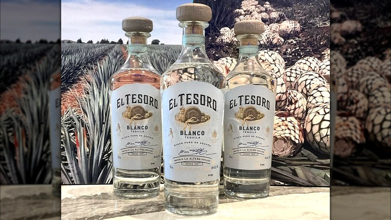 Though the process is time-consuming, the resulting Blanco tequila is one of the most affordable tequilas at Costco, costing under $20 for a 750 milliliter bottle that has one Reddit user saying, it is "an absolute steal at that price." It's typically double that. El Tesoro's unaged 80-proof Blanco showcases the distillery's focus on producing agave-forward tequilas melding with citrus, freshly cut grass, and floral notes. The profile is clean and crisp, perfect for a zesty Paloma cocktail.
