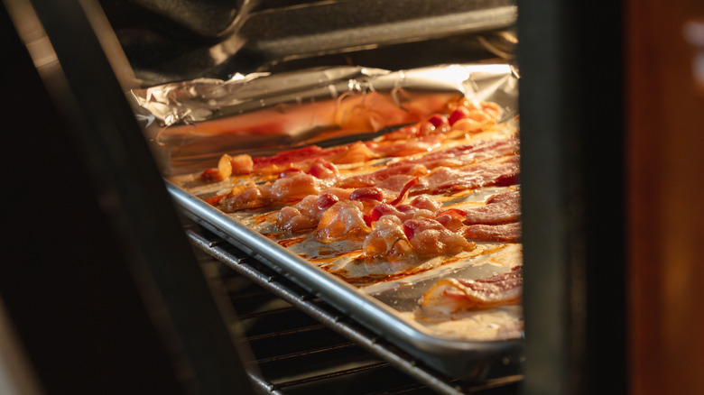 Many people swear by oven cooking for the crispiest bacon, whether it's regular streaky bacon, Canadian bacon, or turkey bacon. It's less messy than cooking in a pan and the bacon doesn't even need to be flipped. The oven will do the work for you, but there are a few tips to ensure the best results, such as lining the tray with aluminum foil, and ensuring the bacon doesn't overlap. If you're feeling dexterous, you can also craft a bacon weave that will bulk up your sandwich with a thick meaty layer.