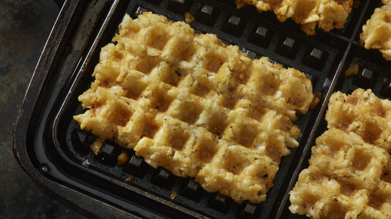 Swapping waffles for the bread on your sandwich is the most straightforward option, but where the waffle maker really shines is by adding a unique texture to your filling. A waffle iron is all you need for crispy bacon, meaty seared sausage patties, and if you haven't tried making waffle hash browns, you're really missing out. And before you think we've forgotten about the egg, you can waffle that too. Pour your mix of eggs, cheese and any other toppings into the iron for a fluffy breakfast omelet.