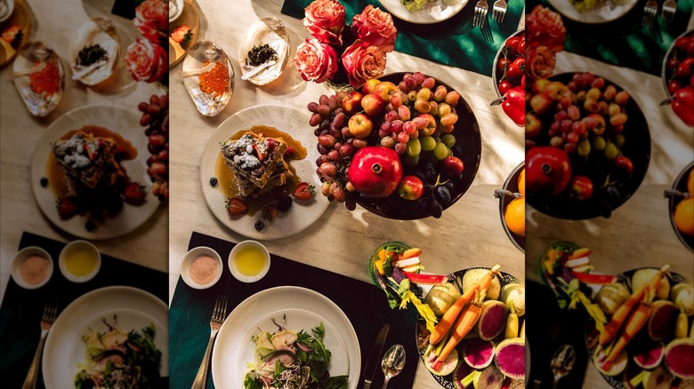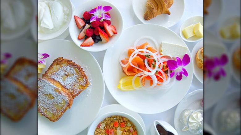 For anyone who's heading to Los Angeles and wants to make it an entire experience, you'll have to check out the Sunday brunch buffet at Culina. We're going to say up front that it's not cheap — as of this writing, it costs $149 per person. Take a look at the menu, though, and you'll see why. If you're craving a brunch buffet with stations for a carvery, shellfish, and omelets along with dishes like braised short ribs, fresh-made crepes, and an ever-changing list of dishes based on what's in season, then you're on the right track with this astonishing buffet.
