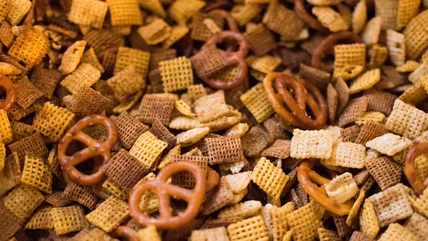 Grab a handful of Cheesy Pizza Remix Chex Mix for maximum flavor