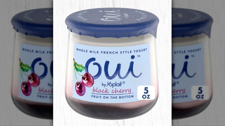 Known for its thick, creamy texture, as well as its sweet flavor, French-style yogurt boasts more of a pudding-like consistency than what you get from its regular counterpart. It is typically made with live cultures in a large vat and divided into individual servings placed into jars. And thanks to Oui by Yoplait, you can get your hands on one of these jars at most grocery stores. Wanting to know more about the flavors offered, including which one was the best and which was better left on the shelf, we ranked 18 Oui by Yoplait French-style yogurt flavors and found that one tasted remarkably similar to Ben & Jerry's Cherry Garcia Ice Cream.