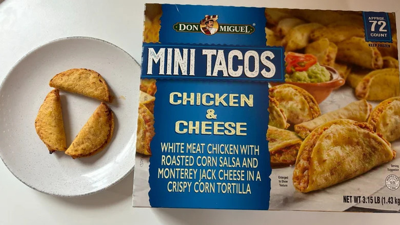 Tacos are one of the most amazing foods when done right, but the Don Miguel mini chicken and cheese tacos don't offer a delightful experience. There are so many genuinely tasty tacos to purchase or make, so there's no stomach room to waste on something that doesn't deliver. The miniature aspect of the tacos is pretty amusing, and the flavors are there, but they are too dry. We needed something to dip it in to make it easier to wash down (that's not a good sign when it comes to tacos). The tortillas also weren't as crispy as the packaging claimed, which was another miss for these frozen bites.