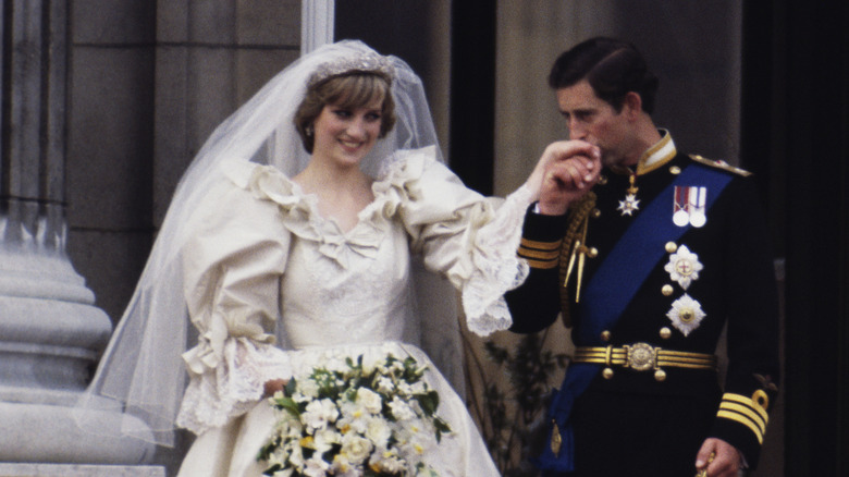 But the real highlight of Charles and Diana's wedding menu was the cake. The royal couple actually served 27 different wedding cakes for their guests, aside from the official cake, which took the baker about three-and-a-half months to construct. This main cake was a fruit cake, which you may have noticed is typical in royal weddings. It stood 5 feet tall and featured both the Spencer family crest and Charles' coat of arms, along with a variety of flowers. Decades later, a slice of frozen cake from this night sold at auction for around $2,450 in 2021.