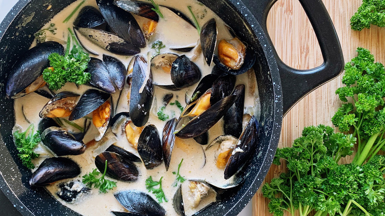 White wine sauce is a fitting match for many types of fish; this includes lean, flaky varieties, such as plaice and sole, as well as meatier options, like monkfish and tuna. The subtle acidity of the wine works beautifully alongside those delicate flavors and tender textures. This sauce is also great in a mixed seafood pasta with additions like shrimp, crab, and squid, which is well-suited for enhancing with that savory, tangy goodness. Mussels are another classic pairing for white wine, and these can be cooked directly in the sauce in until the shells open up.