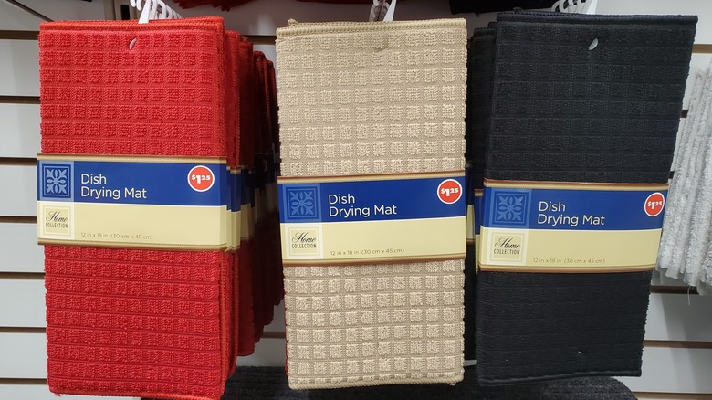 Whether you hand-wash all of your dishes or just need a spot to let all those plastic lids dry when they come out of the dishwasher, you might want to pick up a few of these dish drying mats at Dollar Tree. The polyester material is designed to absorb liquids and dry quickly. This can keep water from puddling up on your countertops and will also help make sure that your dishes dry quickly, so they can be put back into the cabinets.