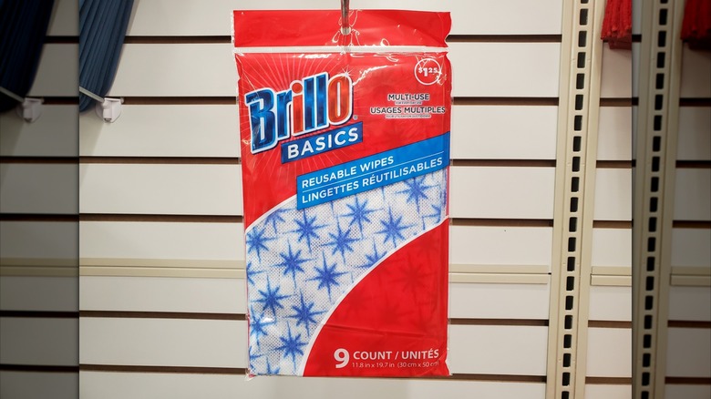 For $1.25, you can pick up a pack of Brillo Basics Reusable Wipes at Dollar Tree. With nine wipes in each pack, they work out to cost a little under 14 cents each.