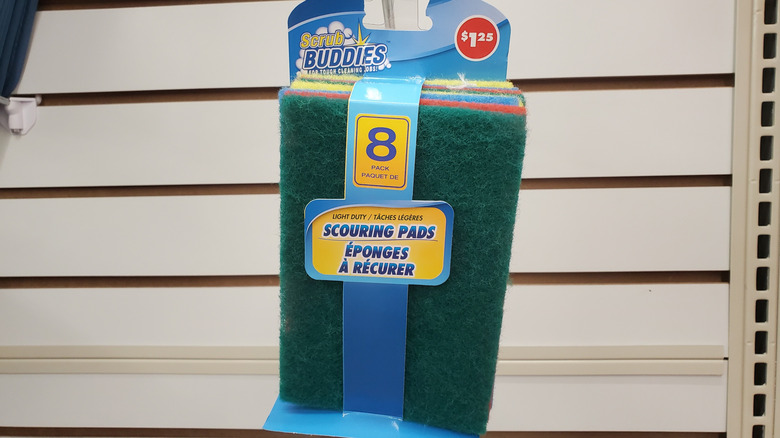Ugh. You accidentally burned the rice again, and now it's all stuck to the bottom of the pan. A soft sponge simply won't cut it during times like these. Instead, you need something that has a rougher texture that will provide more scrubbing power, such as a scouring pad. At Dollar Tree, you can pick up a pack of eight light-duty scouring pads for only $1.25. That works out to just over 15 cents each.