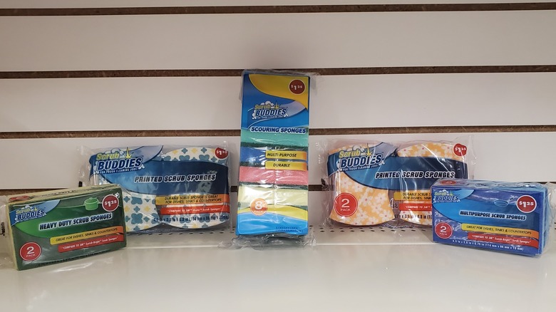 Fortunately, Dollar Tree offers some budget-friendly options that can help you keep your costs down while also preventing those germs and bacteria from accumulating on an old sponge. The store sells various scrub sponges (sponges with one abrasive/mildly abrasive side). There are different colors, patterns, and shapes (rectangular vs. slightly contoured) available to help you find the right match for your cleaning needs.