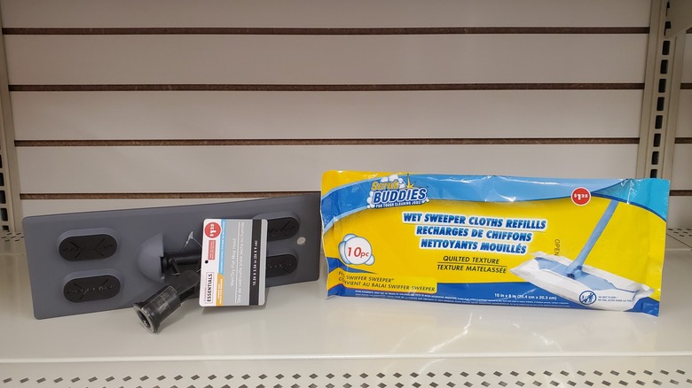 Instead, you might want to consider picking up a wet/dry flat mop head and wet sweeper cloths at Dollar Tree (along with one of those interchangeable long handles we mentioned above). Keeping these tools in the corner of your kitchen will make it so much more convenient to keep your floors clean and to address any spills that happen.