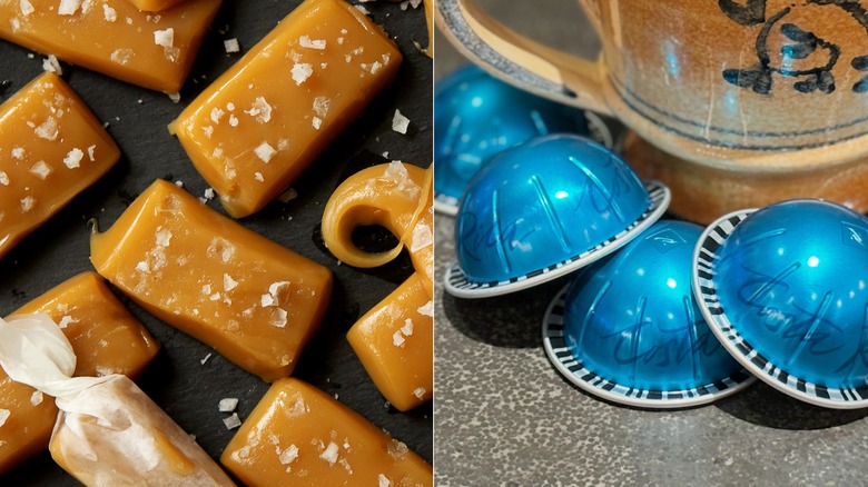 For example, Nespresso's Costa Rica pod has notes of maltiness, cereal, and sweetness. These notes are a natural complement to caramel; malt enhances its sweetness, cereal adds a note of complexity, and the sweetness of Costa Rica will help all of its flavor notes blend with each bite of caramel, so there's no harsh aftertaste. Costa Rica also pairs well with chocolate, which comes in handy for things like chocolate-coated caramels.
