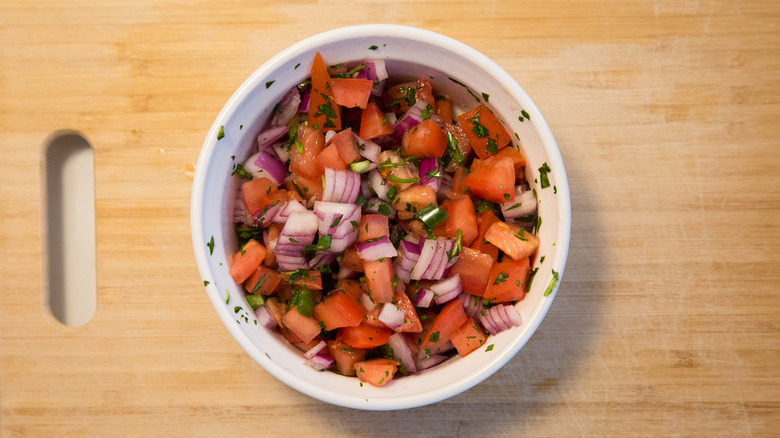 - Add all of the pico de gallo ingredients to a medium bowl and stir to combine. Set aside.