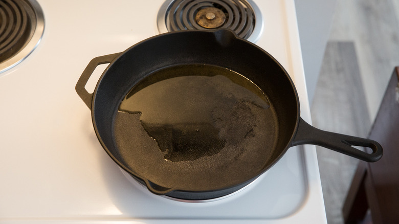 Heat 1 tablespoon olive oil in a heavy-bottomed skillet on medium-high.