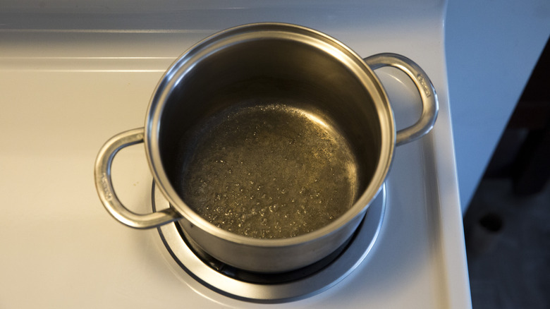 - When it's very hot, add the flour, whisking continuously until bubbly and the flour cooks, about 45 seconds.