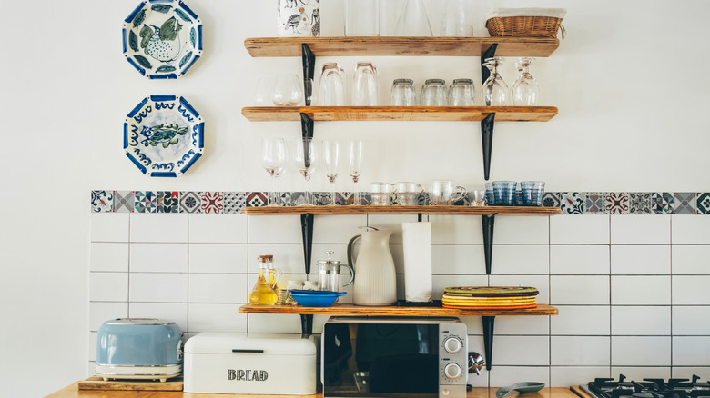 What exactly does this look like? Open shelving is your friend. Say goodbye to boring blank walls and instead install shelves that will provide valuable storage space. Where there's more narrow wall space, hang racks or hooks — these can also go in pantry closets or cabinets that have tall shelves. If you've got a lot of space between the top of your items and the next shelf, use it; but that doesn't mean making things messy with stacks. Hooks and racks take advantage of that room neatly. You can also use magnetic strips in these kinds of spaces, creating a whole new option for storing utensils and tools while also making them easier to grab and use.
