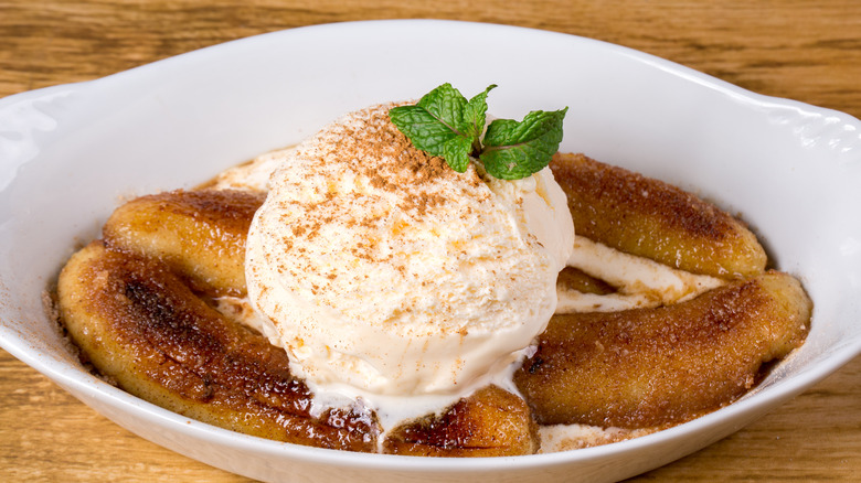 Cooking bananas in their skin is the easiest dish-free way to achieve a single-ingredient roasted dessert. You can top them with a scoop or two of vanilla ice cream; Van Leeuwen is a popular brand of vanilla ice cream that we ranked as a favorite. You could finish the dessert with a sprinkling of cinnamon and chopped pecans for some spicy crunch, or take the dessert in a more tropical direction with shredded coconut and cashews.