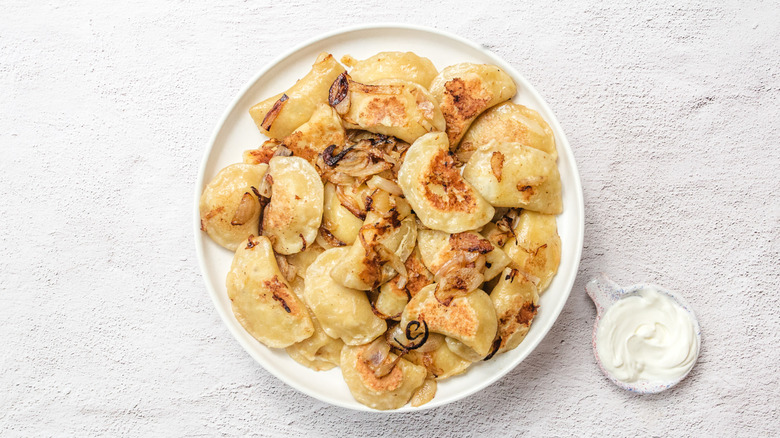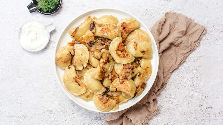 There's something deeply satisfying about biting into a perfectly made pierogi. According to Ksenia Prints of At the Immigrant's Table, who grew up eating various versions of these Eastern European dumplings, the juxtaposition of the crispy shell, the silky-smooth fried onions, and the creamy potato and cheese filling is only surpassed when you make the thin dough from scratch.