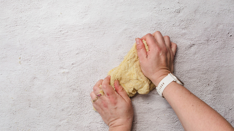 We recognize that making dumplings from scratch and then boiling and frying them may not be everyone's cup of tea. Nonetheless, we stress that there's really nothing that tastes quite like homemade pierogi dough, which sets it miles apart from any frozen variety. That being said, when you're short on time, buying your favorite frozen pierogies and following our recipe for boiling, frying, and then serving them with the fried onions is also a great way to make this meal weeknight appropriate. If you want to make the dough while cutting down on some arm work, you can use a standing mixer with a dough hook to combine the ingredients.