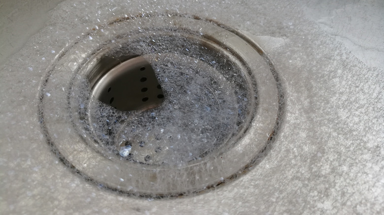 If your garbage disposal seems like it needs a bit of a deeper clean, try baking soda and vinegar. Just add a half cup of baking soda to the disposal, then one cup of vinegar, and let the mixture bubble for up to ten minutes. Then, flush everything with water. As an additional measure you can also use citrus peels — while you shouldn't be grinding a whole lemon, cutting off a few thin slices of lemon or orange peels, freezing them, and then grinding them releases oils that can help further remove buildup on your garbage disposal. It's a small effort to take care of one of the most useful tools in your kitchen.