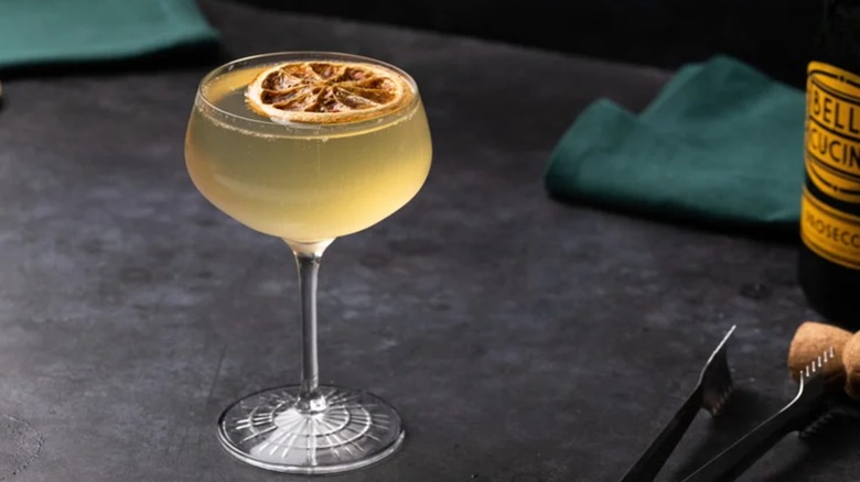 At a glance, "French 95" might look wrong to you — especially if you're familiar with the drink that this one takes its name from. The French 75 is a gin-based cocktail that's famously named after a World War I-era field gun, and the story goes that it not only immortalized the weapon, but was a reference to just how potent the cocktail is. The French 95 uses bourbon instead of gin, and while there is simple syrup in this for a little bit of balance, that's far from the overwhelming flavor profile here.