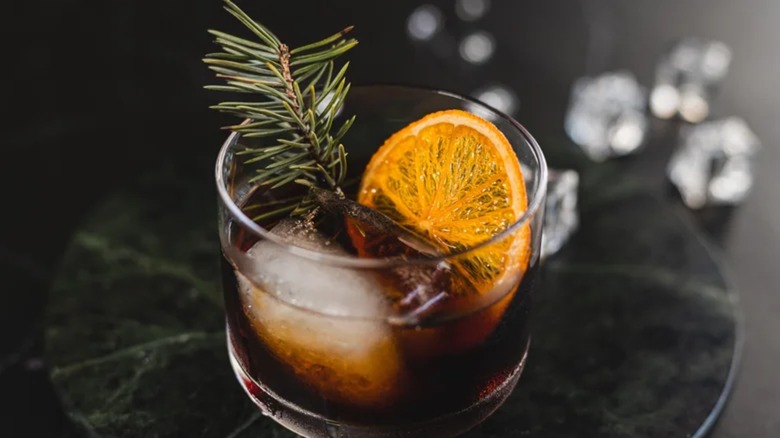 Red vermouth tends to be not quite as bitter as dry vermouth, and it's worth noting that there are all different kinds of vermouth — it's entirely possible that if you're not a fan of one, you might like another. Amaro Averna Siciliano is, as the name suggests, a Sicilian liqueur that's been around since 1868. It has a unique taste that mixes bitter orange with licorice and herbs like myrtle and sage. If you don't want to buy a whole bottle just for this cocktail, there's a widely accessible alternative that will help give you those same winter spices: Jägermeister.