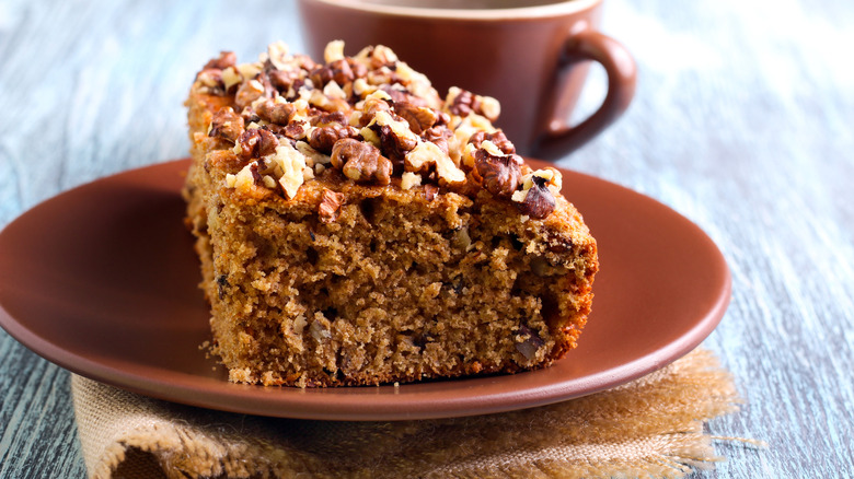 Karythopita is a spiced walnut cake. Like other siropiasta desserts, it's doused with syrup once it comes out of the oven. The syrup — often made from sugar, water, lemon juice, and cinnamon – should be cooled before being poured onto the hot cake. Meanwhile, walnuts are the heart of the cake itself — "karydia" is the Greek word for "walnuts." The walnuts should be pulsed in a food processor, rather than blended into a powder, as the chunks add texture to the cake. Cinnamon is a must, but it's also common to add nutmeg, cloves, or cardamom.
