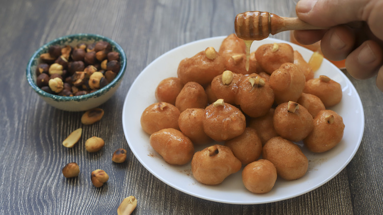 Loukoumades are yet another recognizable Greek dessert. This honey-soaked, Greek take on donuts is similar to donut holes, but in true siropiasta fashion, they're soaked in honey after they're fried. Loukoumades, then dubbed "honey tokens," were given to winners of the first Olympics in Ancient Greece. Today, they're sold by Greek bakeries and street food vendors, or you can even try to make these at home. You can even find loukoumades outside of Greece, including in countries like Turkey, Italy, and Egypt.