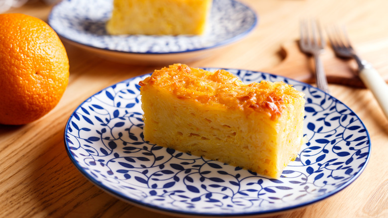While the name "galaktoboureko" comes from "gala," the Greek word for milk, it's possible to make galaktoboureko with dairy-free milk as well. This unctuous dessert is relatively straightforward to make. However, while it might be tempting to dive in once it's done baking, it's important to allow it to completely cool so the custard can set properly.