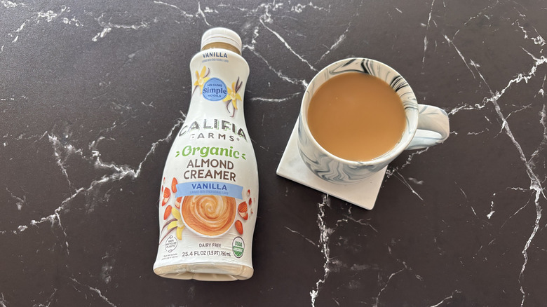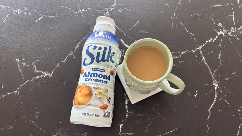 Silk is a brand perhaps best known for its soy milk lineup, but any plant-based milk is fair game. You'll also find almond milk, coconut milk, oat milk, and even cashew milk in Silk's repertoire, and of course, plenty of plant-based creamers, to boot. One such plant-based creamer is the vanilla-flavored almond creamer, an unsuspecting coffee addition that really managed to pack a creamy punch in my cup of coffee.