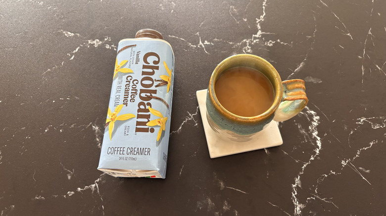Chobani is a brand best known for yogurt, though its scope stretches into other dairy arenas, too. Chobani also has a line of oat milk, and for those creamer lovers out there, the brand has also forayed into the world of coffee creamer — a small but mighty lineup of flavors that includes classic vanilla, hazelnut, peppermint mocha, sweet cream, caramel macchiato, and even cinnamon coffee cake.