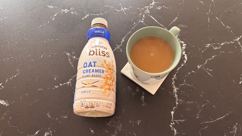 While I definitely found the creaminess in this creamer to be more subdued compared to its dairy-filled counterparts, that didn't mean it was any less tasty. The vanilla flavor is nice and strong in this creamer, and the slight oaty undertone really enhances the vanilla, making for a unique inclusion to your cup of joe. Though you may have to add a little more of this plant-based creamer to achieve a certain level of creaminess, the flavor is super buildable — and even as I added more creamer, I didn't feel like the cup of coffee was becoming too sweet or too vanilla-forward.