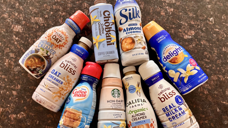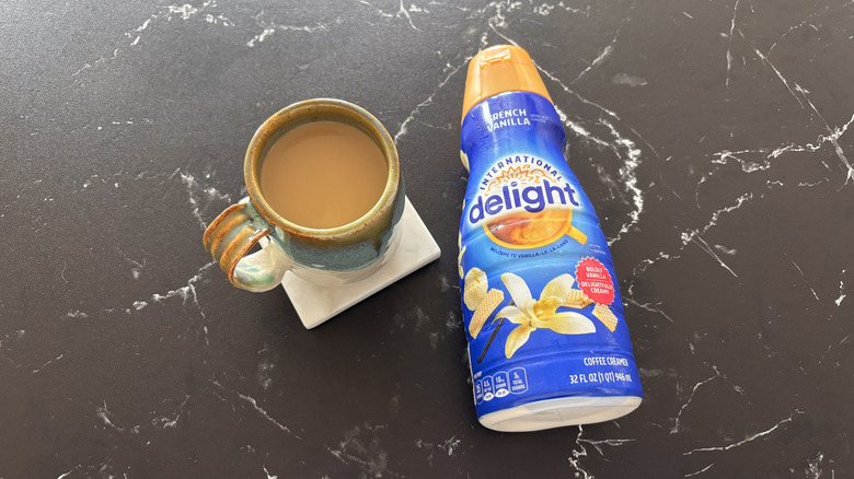 Nothing beats a hot cup of joe in the morning, and for those who don't care for the taste of black coffee, a good creamer is absolutely essential. There are no shortage of coffee creamer flavors on the market these days, with some of them nice and classic, like hazelnut or mocha, and others a little more unique, like the Thai iced coffee and piña colada-flavored "White Lotus" creamers. One such flavor that keeps things safe and simple yet delicious is vanilla, and no matter which grocery store you go to or which brand you seek, you'll be hard-pressed to not find a vanilla coffee creamer on the shelves.