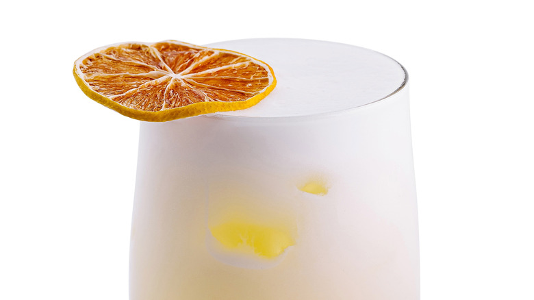 A super obvious garnish for cocktails is a lemon, orange, or lime slice. While these also work fine with frozen cocktails, they're not the most exciting garnish you can use. However, using dried or dehydrated citrus wheel will make your cocktail look much more sophisticated. Dried citrus wheels look much more dramatic than a fresh slice would, and they even infuse a delicate citrusy sweetness into your drink. It's no wonder they are all the rage at the moment. Plus, they go well with many types of cocktails, from frozen negronis to frozen margaritas.