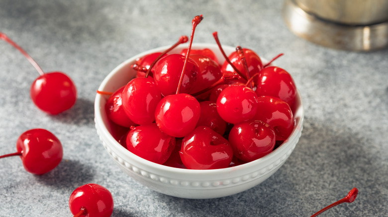 I'm probably not the only one whose favorite childhood drink was a Shirley Temple. It felt like a grown up to order something that looked like a cocktail and all, but to be perfectly honest, the real reason was probably because of the maraschino cherry that came with it. Those sweet little orbs tasted like candy and playing with the stem was part of that fun. The experience as an adult is no different, which is why maraschino cherries are still a great cocktail garnish. They feel fancy and taste great. On a frozen cocktail, you can lay them right on top like you're decorating an ice cream.