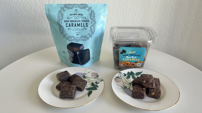 If you like caramel, then each brand offers a unique option. While they're similar in theory, the shape and flavor profile are different, which means you may have a preference for one over the other. I have previously tried the caramels from Trader Joe's for an article on sweet treats to get from TJ's for your Valentine, and they are a solid candy. They have a buttery caramel interior and a medium amount of chocolate (not thin-dipped, but not too thick, either). They are thin but wide, while the Choceur dark chocolate sea salt caramels are thick squares.