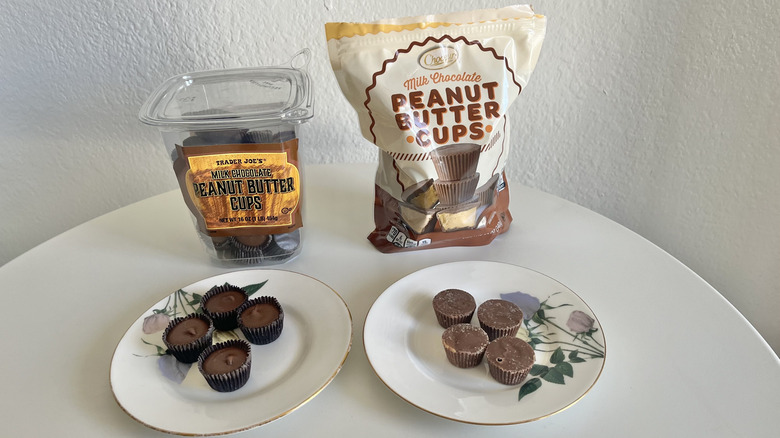 The Trader Joe's Milk Chocolate Peanut Butter Cups come in a see-through plastic container, and each one is wrapped in a paper wrapper — like you'd see with a Reese's cup. They also have a small marking on top where you can see that the chocolate was dipped and then dried, giving it an almost homemade appearance. For one dollar more, you also get one pound (compared to Aldi's 12 ounces), making TJ's a much better value.