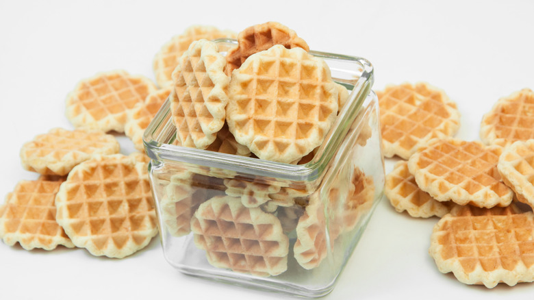 Speaking of sticking, it's also important to coat the waffle iron with cooking spray before adding the cookies. Just like when you're making homemade waffles, this step is crucial to ensuring that you can easily remove the cookies from the hot iron when they're done. "Make sure you spray the iron with cooking spray so the dough doesn't stick, and don't overstuff the iron; otherwise, it could overflow," Jerelle Guy advises. "Because of the direct heat, cooking in the waffle iron can also burn the dough if cooked too long, so watch it carefully."