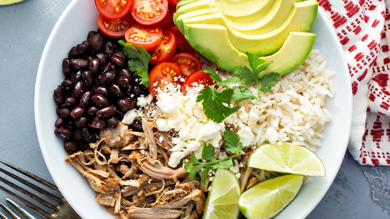Despite the boost they bring, the legumes are somewhat mild, and there are all kinds of ways you can elevate the flavor of canned black beans to enhance the Southwestern salad even more. The kit leans earthy and aromatic, so you can add a bright kick by tossing the beans with some freshly-squeezed lime juice before adding them to the salad. To bring out more of the heat from its poblano-spiced avocado dressing, fry up the beans with dried chile peppers, onions, and garlic. You can also amp up their meaty flavor by simmering the beans in mushroom or beef stock, or just keep things simple with a salt and pepper seasoning combo.