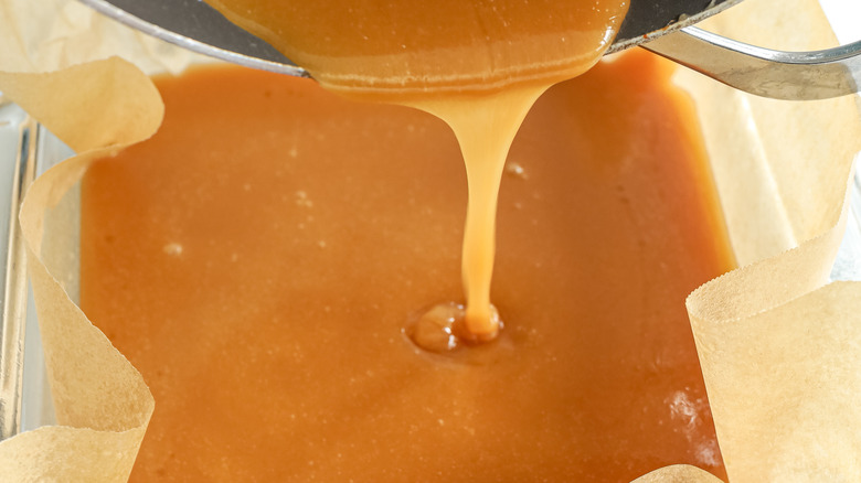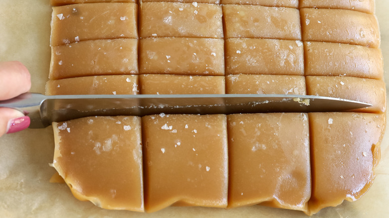 Use a sharp knife to cut the caramel into squares.