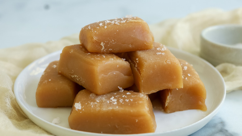 Salted caramel is certainly not a new invention, but its use in baked goods and treats such as ice cream, cakes, cookies, and even salted caramel whiskey continues to reach new creative heights as time goes on. Of course, salted caramel is equally as delicious in a more old-fashioned, classic context, which is exactly what recipe developer Jessica Morone was going for with her salted caramel candies. Morone says these caramel candies strike the perfect balance between savory and sugary, telling us, "The caramel is rich and buttery, while the hint of salt sharpens the flavor and keeps it from being overly sweet." She points out that "Making these candies is about patience, precision, and timing," but feels that the results are well worth the effort.