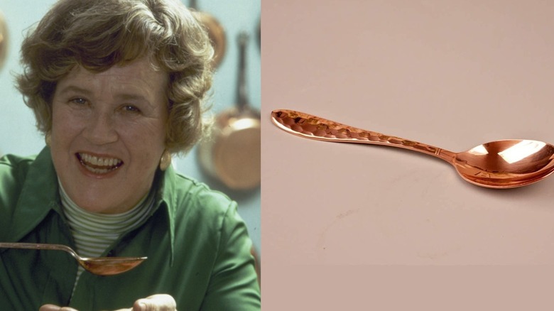 The second Child-inspired kitchen tool we recommend you to buy from Amazon is a long soup spoon from a brand like EnerMagiX. It's no secret that food icon Julia Child loved copper gadgets, so the one we're recommending is made of copper. Copper spoons are durable and versatile. You can use your new spoon to taste your soups, like Child did, then give it a quick rinse, and use it to scoop up some ice cream after dinner. Now, ready for our next recommendation? It's a dicey one!