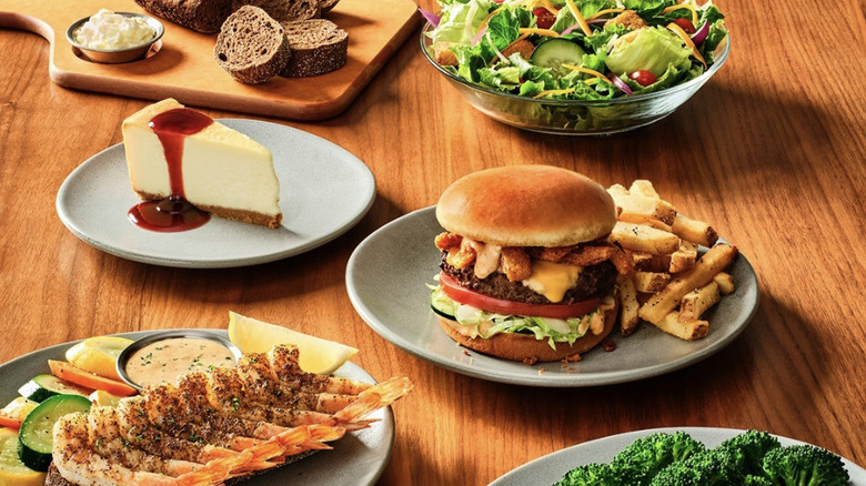 This time around, the deal starts you off with a soup or salad, regardless of which price tier you choose. Included starter options are baked potato soup, house salad, or Caesar salad. For a few more dollars, it's possible to upgrade to Tasmanian Chili or blue cheese pecan chopped salad. All three tiers come with a classic steakhouse side dish alongside one of Outback's favorite "Down Under" entrées, including the Bloomin' Fried Chicken or burgers, eight-piece grilled shrimp or chicken "on the barbie," six- or eight-ounce center-cut sirloin steaks, a half-rack of Outback ribs, and more, spread across the three set-price options.