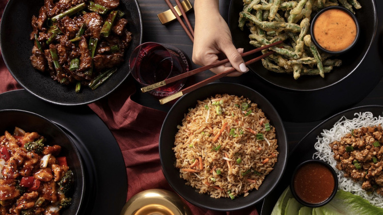 Then comes the procession of tasty entrées for this Chef's Feast, with six offerings included in the basic three-course dinner price, each accompanied by a side of rice. Some of the chain's well-loved dishes perch on this list, such as crispy honey chicken and its signature lo mein with a selection of meats, shrimp, or tofu. The next price level bumps you into the territory of firecracker shrimp, pad Thai, Mongolian beef, and more. The Deluxe level offers either a Mongolian or teriyaki trio. By request, you can choose vegetarian and gluten-free options. Diners are welcome to eat in-house or via takeout, though third-party delivery services are excluded.