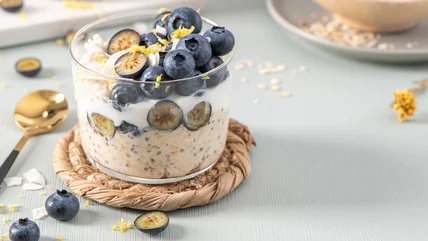 Protein is very important for our bodies, being a building block for muscles, as well as aiding metabolism, and helping to keep blood sugar levels even. So, spooning a good portion of protein into your overnight oats is a great way to set up your day right. A super ingredient to use that brings a protein punch plus a creamy flavor to boot is cottage cheese. A half cup of cottage cheese contains around 14 grams of protein. If you break that down into a more realistic portion for your overnight oats, say 2 tablespoons, you're getting around 5 grams of protein by adding cottage cheese.