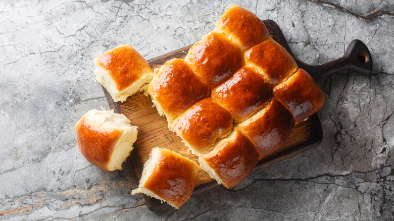 Where frozen dinner rolls really shine is one of the simplest transformations: Being stuffed. Flattening frozen dinner roll dough and wrapping it around some fillings that are cooked directly inside transforms them into a delicious version of a steamed bun. Simple mixtures like ham and cheese, spinach and cheese, or browned ground beef can become full meals cooked inside a frozen dinner roll. It's particularly great for using leftovers, which cuts down on the prep even more. Try filling them with pulled pork, leftover beef stew, or chopped chicken with some extra spices.