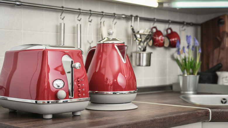 If you're looking to add some color to your space, Ariel Darmoni says, "You can also paint a feature wall or your kitchen chairs to bring in that retro energy without overhauling the whole room." A few simple additions can also be very impactful. For example, Darmoni highlights that you could swap the existing curtains or blinds in the room to a bold pattern or gingham material. Elissa Hall says, "Even countertop appliances — like a vintage-look toaster or a red kettle — can contribute to the vibe without requiring a complete redo."